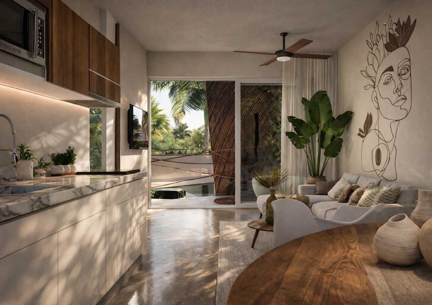 Ubicada dentro de un residencial privado en Tulum, Quintana Roo, junto a la Reserva del Jaguar